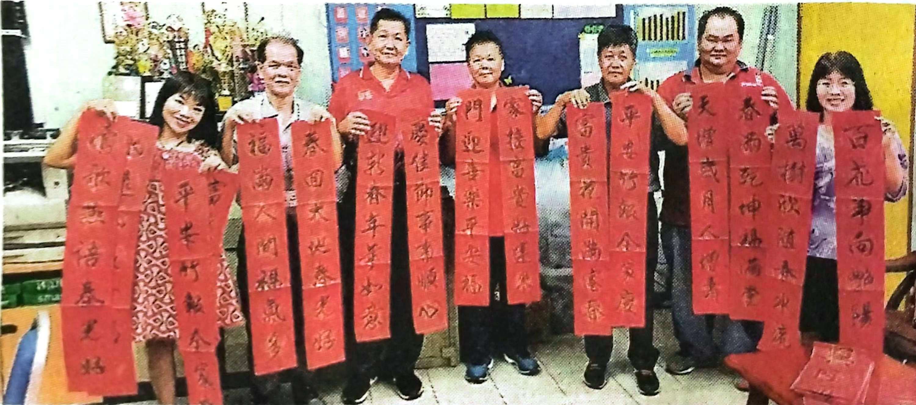 赠送春联活动是为感谢两个单位热心协助和长期借出场地充当比赛场所,这些春联来自书艺协会书法大师之笔,有汪义英、许守良、许俾銮等。