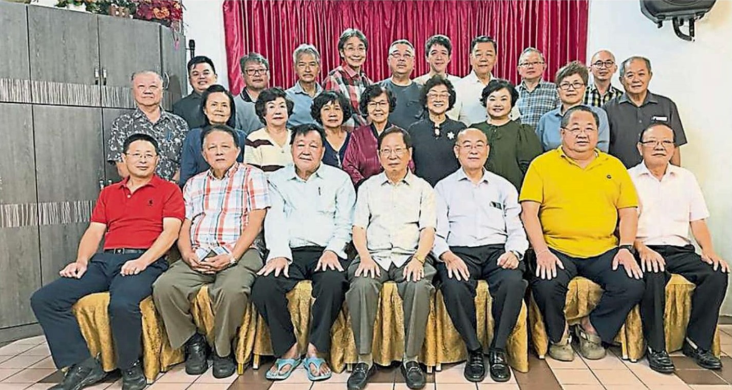 诗人节庆祝会参与者合影。坐者左起为砂拉越科技大学孔子学院中方院长韩孟奇、诗巫诗潮吟社社长黄政仁、卸任马来西亚诗总会长邓万秋、诗巫诗潮吟社名誉社长天猛公拿督刘利民、名誉顾问刘义华、本固鲁刘贤远、文协秘书劉錦虎。