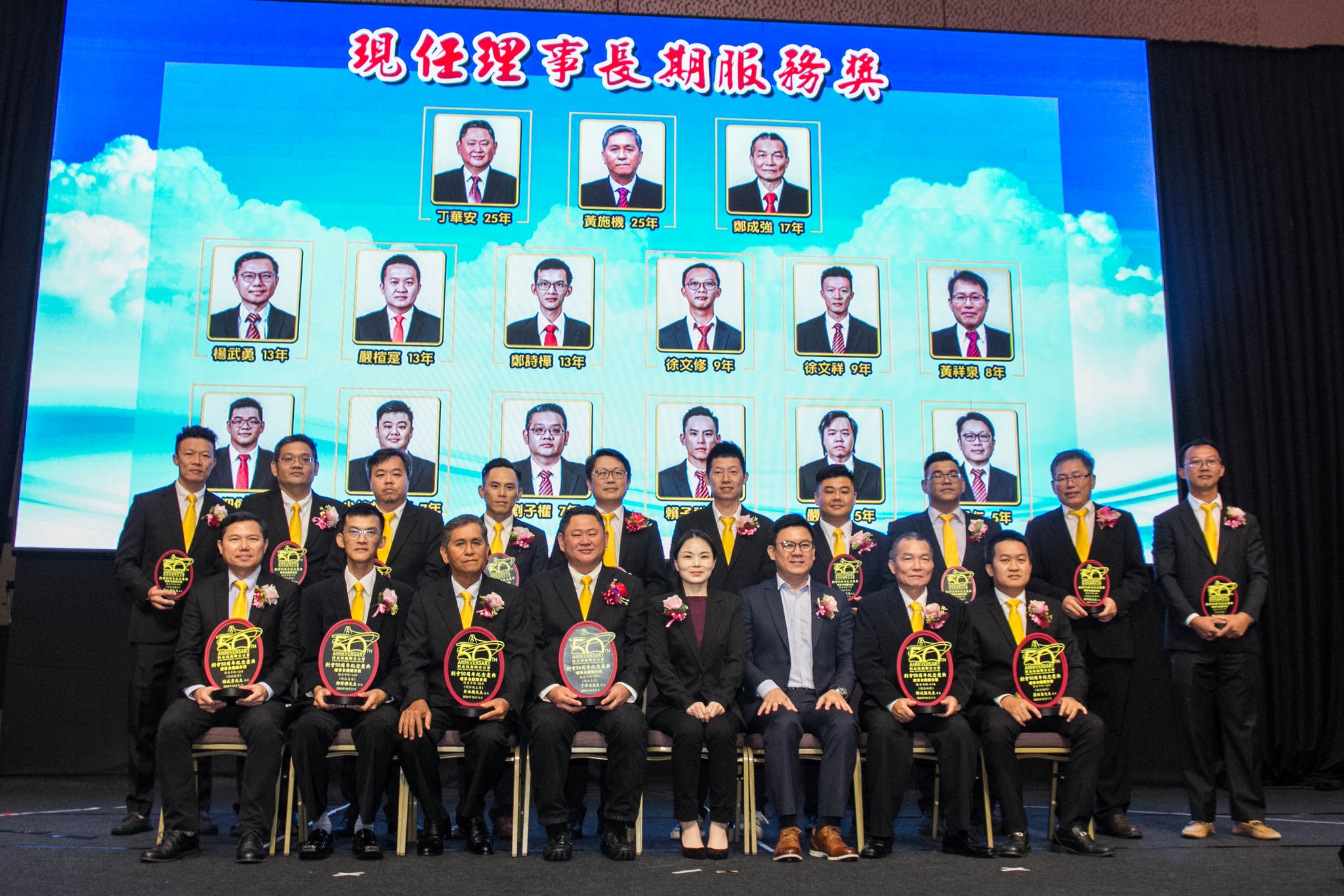 获得长期服务奖的诗巫船厂联合公会理事合影。