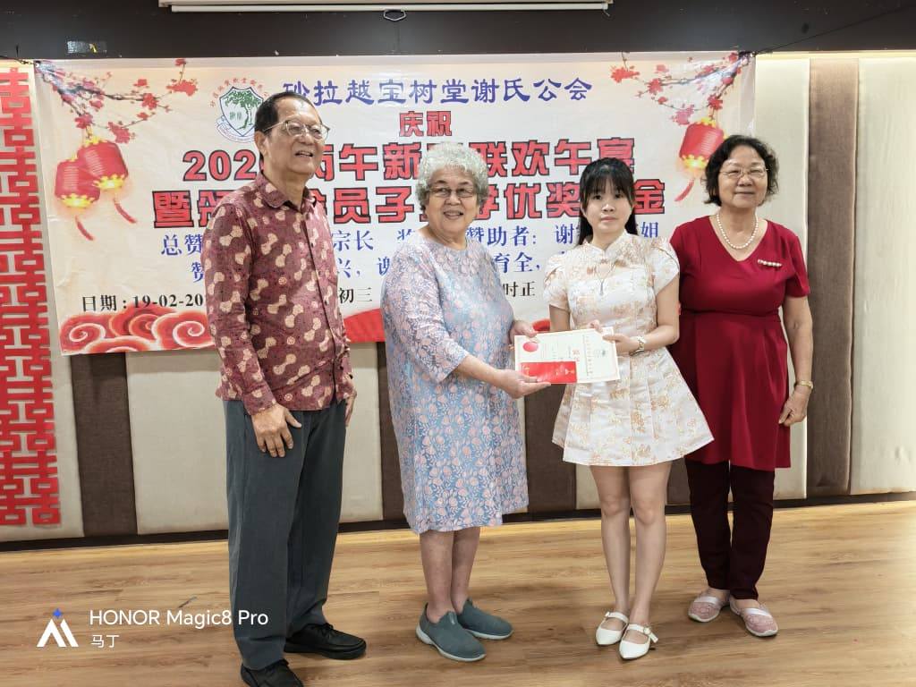 砂拉越宝树堂谢氏公会2026丙午砂年新春联欢午宴暨颁发会员子女学优奖励金筹委会主席谢赛美指出,该会向来重视教育,关心后代成长,因此特别在新春联欢会上颁发各级学优奖励金,借此鼓励会员子女勤奋向学、立志向上,未来成为对家庭及国家有贡献的人才。