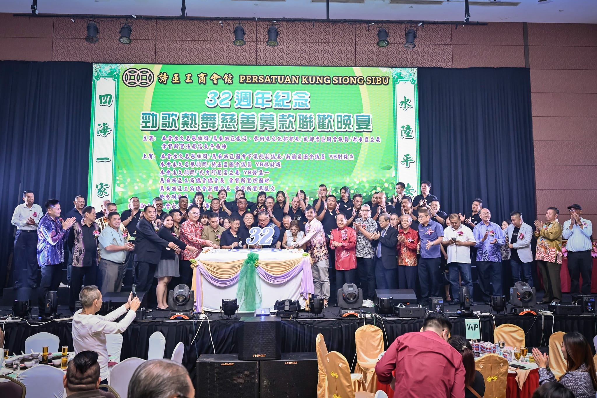 诗巫工商会馆于10月19日(星期六)6时30分在晶木酒店盛大举行庆祝32周年纪念劲歌热舞慈善募款联欢晚宴。