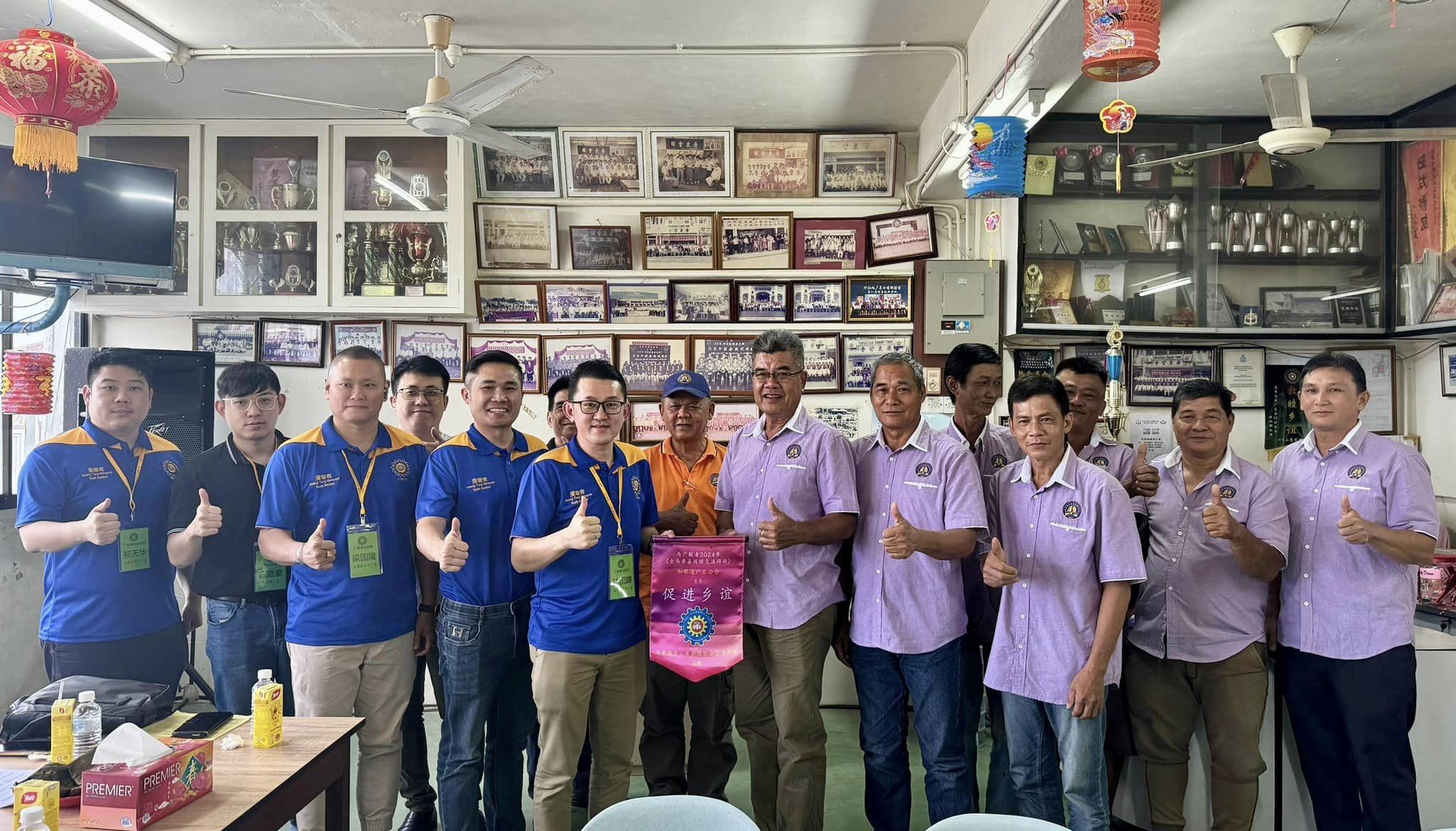 大马广联青总团一行人日前在署理总团长兼领队胡文泰律师(左四)的带领下,亲善拜访加拿逸广东公会青年团并进行交流。图为大马广联青总团长林国鍏(前左五)赠送锦旗给加拿逸广东公会青年团团长甲必丹梁顺昌;前右三起为副团长江先福、署理团长梁庆福;中为会长黄其发。