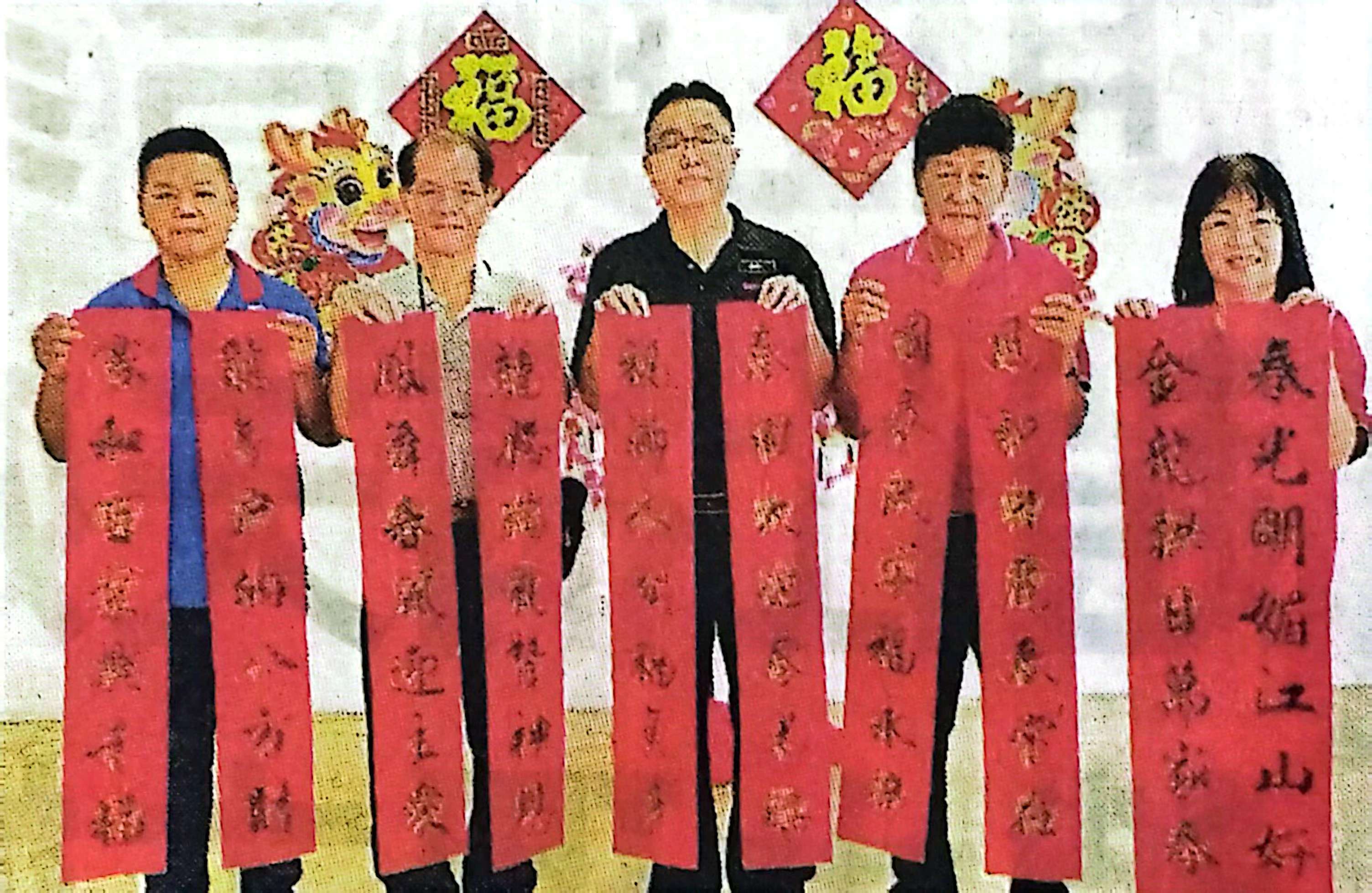诗巫书艺协会顾问欧南华在会长许俾銮与理事们陪同下,赠送春联于市政第四小学与诗巫卫理毕理学院。