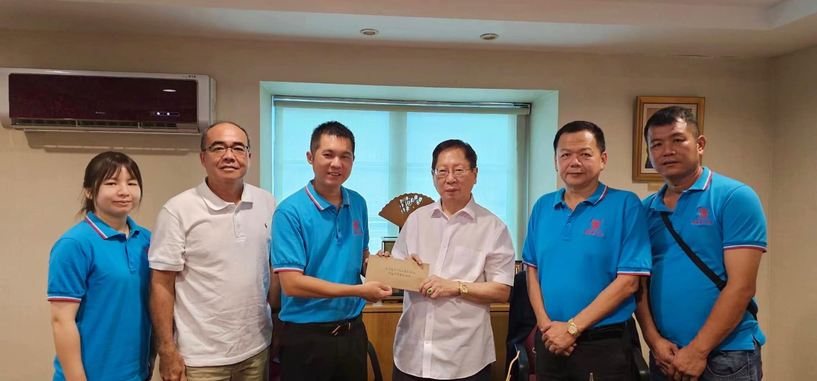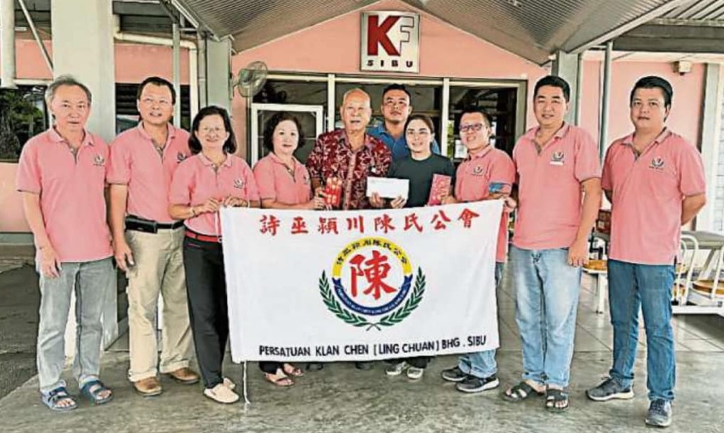 诗巫颍川陈氏公会献爱心,该会理事、青年团、妇女组于1月28日(星期日)前往诗巫肾脏基金会移交捐款。图为主席陈则旅(左五)移交捐款给诗巫肾脏基金会经理黄琴心(右四)。左六为筹委会主席陈仕录;右三为青年团团长陈俊宏;左三为妇女组主任陈俏颖。