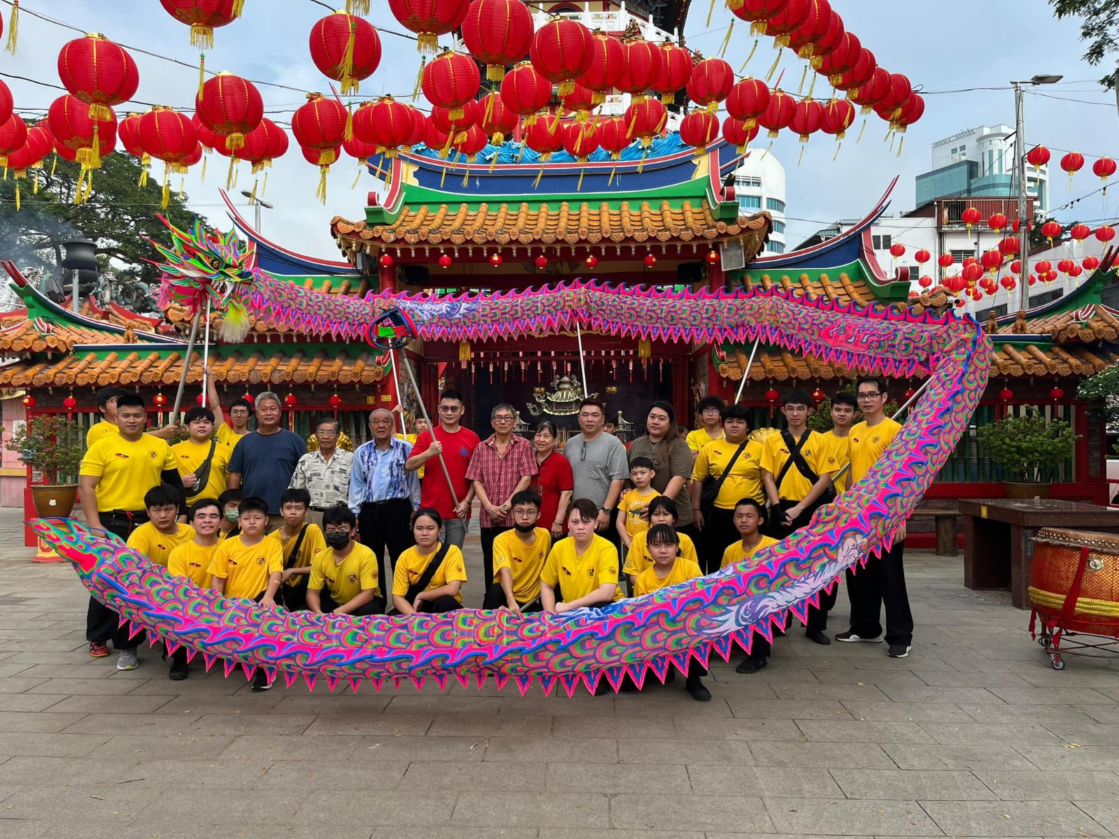 诗巫拳术健身协会顾问俞希隆的父亲俞现球、母亲张美芬、兄长俞惜贺及他联合赞助一条龙给该协会。1月28日上午,他们受邀为新祥龙主持点晴仪式。该协会将在农历新年期间使用这条新祥龙进行贺岁表演,同时也作为全砂龙狮比赛用途。